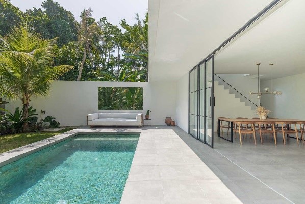 Developed and launched in 2021 by PT The Leo Villas, the project comprises of four villas all situated on 755 m2of land. Each villa features a private pool with poolside furniture, mid-century modern and minimalistic interior design elements, and comes fully furnished with designer and bespoke items, fully-equipped kitchens, high-end Sonos sound systems and 65” TV, and much more.
