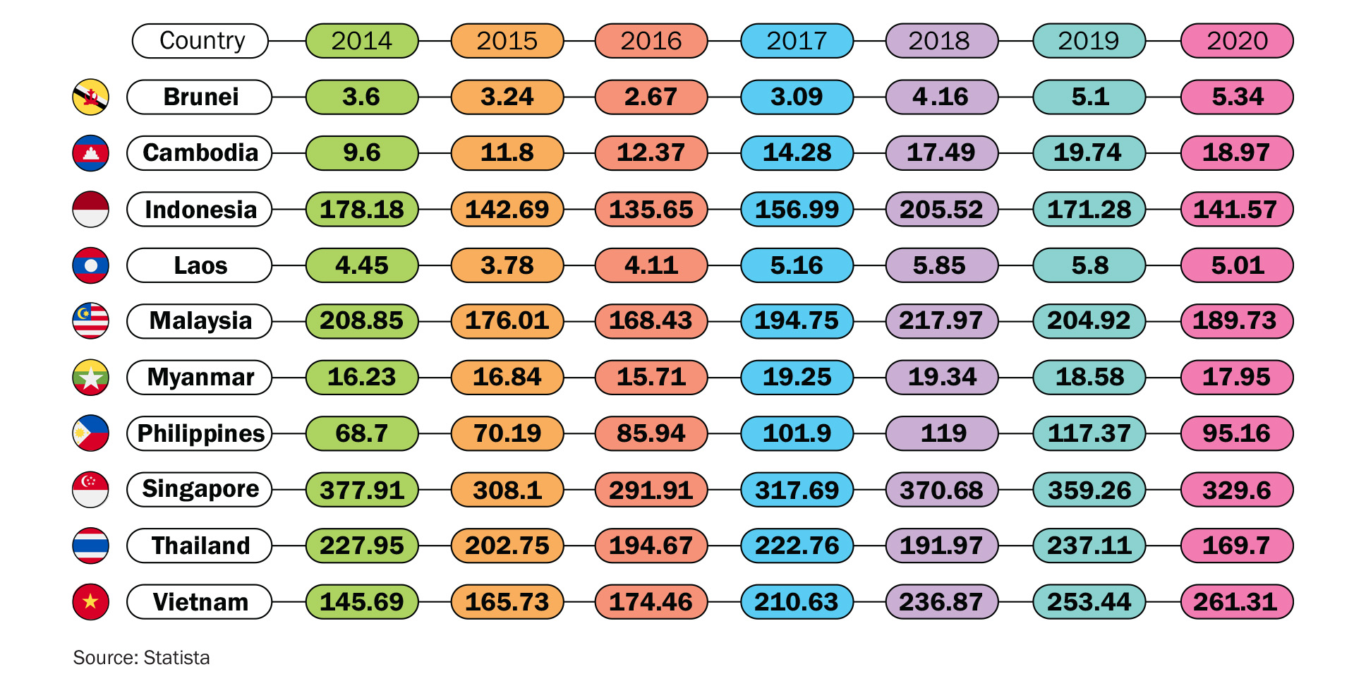 Import Value of the ASEAN Region By Country in Billion US$ (2014 – 2020) April 2, 2024 Share FacebookTwitterPinterestWhatsApp Previous articleInsureMO partners with MoneyHero Group to create the premiere digital insurance aggregation and comparison platform in Greater Southeast AsiaNext articleSingapore’s Gross National Products (2011 – 2022) Our Shows An interview with Omar Khan, Director of the International Offices – Dubai Chamber of Commerce and Industry on the Global Business Forum ASEAN 2021 November 29, 2021 The Legendary Tun Dr Mahathir Mohamad February 1, 2022 Crony Capitalism vs Capitalism – An Interview with Rob Chatfield October 15, 2021 LEAVE A REPLY Cancel reply Comment: Please enter your comment! Name:* Please enter your name here Email:* You have entered an incorrect email address! Please enter your email address here Website: Save my name, email, and website in this browser for the next time I comment. Other Articles LSEG Empowering Malaysia’s Capital Market from Greater KL June 25, 2024 Plaza Premium Group: Driving Investments in Malaysian Talent and Resources in Greater KL December 5, 2024 The Estée Lauder Companies Established Regional Shared Services Hub in Greater Kuala Lumpur October 25, 2024 Spectrum Material’s Strategic Move in Greater KL’s Semiconductor Ecosystem May 23, 2024 Greater Kuala Lumpur: The next Stronghold in Global Cyber Resilience October 15, 2024 Demant Fuels Asia-Pacific Innovation with Greater KL R&D Hub August 6, 2024 Kelly Hoppen: Bright and Beautiful March 14, 2024 Draupadi: The Woman Created From Fire March 12, 2024 Mind Blown: Dale Chihuly’s Glass Sculptures March 21, 2024 Amaterasu: The Sun Goddess March 14, 2024 The Sweet Success Of MSM Malaysia April 3, 2024 The Rise of Greater Kuala Lumpur April 19, 2024 NANO MALAYSIA BERHAD: Big Vision, Small Packages April 3, 2024 Perbadanan Kemajuan Negeri Selangor (PKNS) Providing Thought Leadership in Property Development August 28, 2024 Prometheus: The Fire Thief March 12, 2024 On a Heritage Trail: Masjid Jamek Sultan Ibrahim, Muar March 18, 2024 Driving Change in the Automotive Industry March 29, 2024 From Bins To Renewables April 19, 2024 From Ordinary To Extraordinary April 19, 2024 First Impressions Matter! April 3, 2024 Load more
