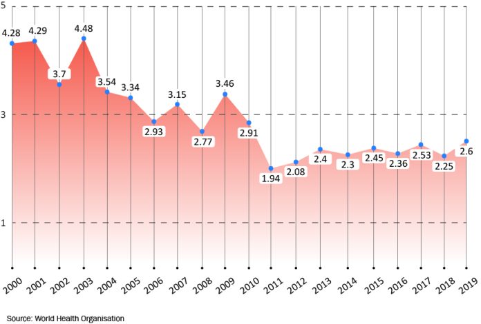 At a Glance Laos Health Expenditure (% of GDP) 2000 – 2019 By Writers VOA - March 29, 2024 0 324 FacebookTwitterPinterestWhatsApp
