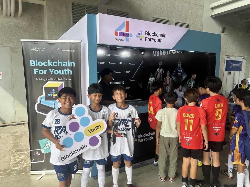 Bitget’s presence centered on creating a welcoming space for parents and children through its Blockchain4Youth initiative. The booth featured a simple penalty shoot-out activity where kids could unwind between matches, with successful attempts rewarded with complimentary refreshments and La Liga x Bitget branded items. For many families, it became an easy meeting point, offering shade, water, and moments of fun amid a packed tournament schedule.