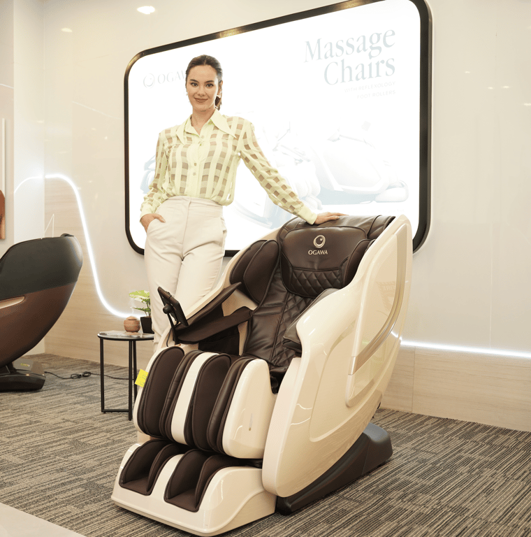 Her visit highlighted her deep connection with OGAWA and reaffirmed her belief in prioritizing one’s well-being. As she explored OGAWA’s flagship offerings,the Smart Reluxe V3 and the MyZonic Lux, Catriona emphasized how both models have helped elevate her approach to rest and recovery, especially during hectic schedules.