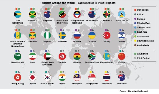 that have either launched CBDCs or pilot projects, please refer to the table titled “CBDCs Around the World – Launched or in Pilot Projects”.