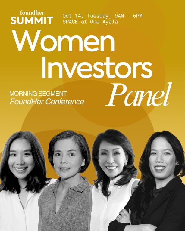 The morning’s host and other speakers include Sarah Perez (Plug and Play APAC); Terol and her FoundHer co-founder, Candice Quimpo; followed by a Women Investors panel featuring Catrina Magsadia (Foxmont Capital Partners), Fatima dela Cruz (Qatalyst Ventures), Rowena Reyes (Sweef Capital), and Tina Di Cicco (Kerubin Capital).
