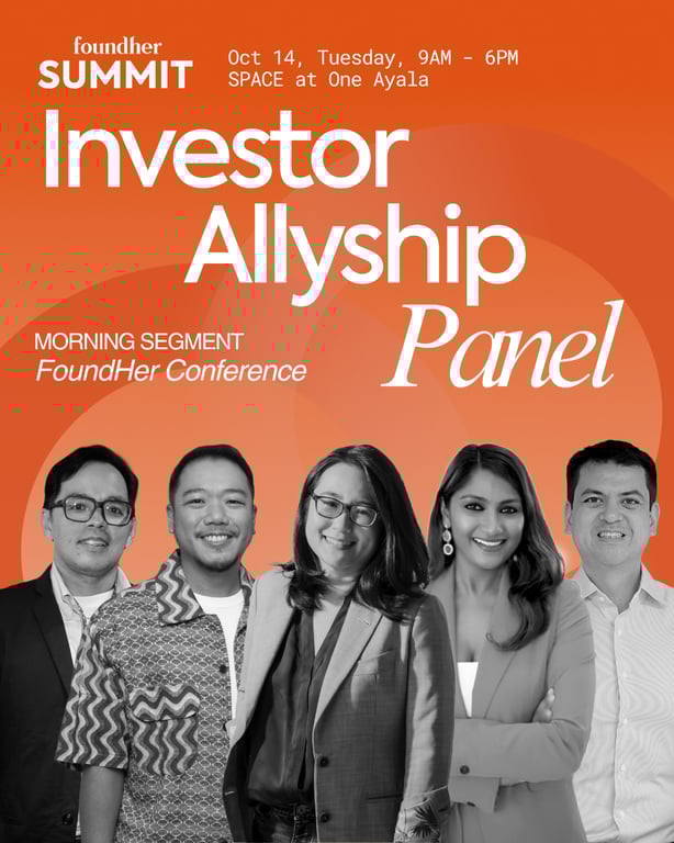 The morning will be capped off by an Investor Allyship panel featuring Conrad de Jesus (Investing in Women), Joan Yao (Kickstart Ventures), Patch Dulay (The Spark Project), Paulo Campos (Kaya Founders), and Priya Thachadi (Villgro Philippines).