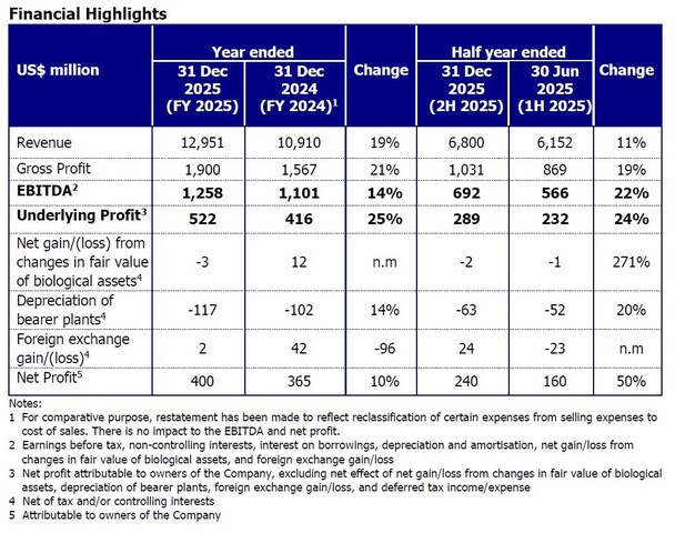 SINGAPORE, Feb. 26, 2026 /PRNewswire/ — Following stronger second-half results, Golden Agri-Resources Ltd (“GAR” or the “Company”) reported a robust FY 2025 performance, supported by appreciation in market prices and volume expansion.