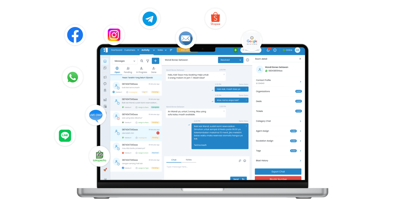 ● Omnichannel untuk menggabungkan WhatsApp, Instagram, website chat, dan platform lainnya