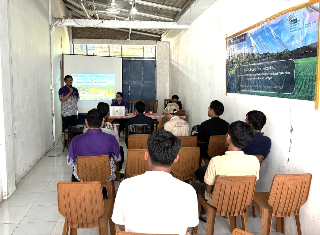 Fokus kegiatan ini berada di wilayah Jawa Barat, daerah dengan potensi pertanian yang tinggi namun masih menghadapi keterbatasan akses terhadap teknologi modern. Melalui pelatihan dan sosialisasi penggunaan drone sprayer, para dosen BINUS berupaya memberdayakan petani dan komunitas lokal agar mampu memanfaatkan inovasi teknologi untuk meningkatkan hasil panen, efisiensi kerja, serta keselamatan di lapangan.