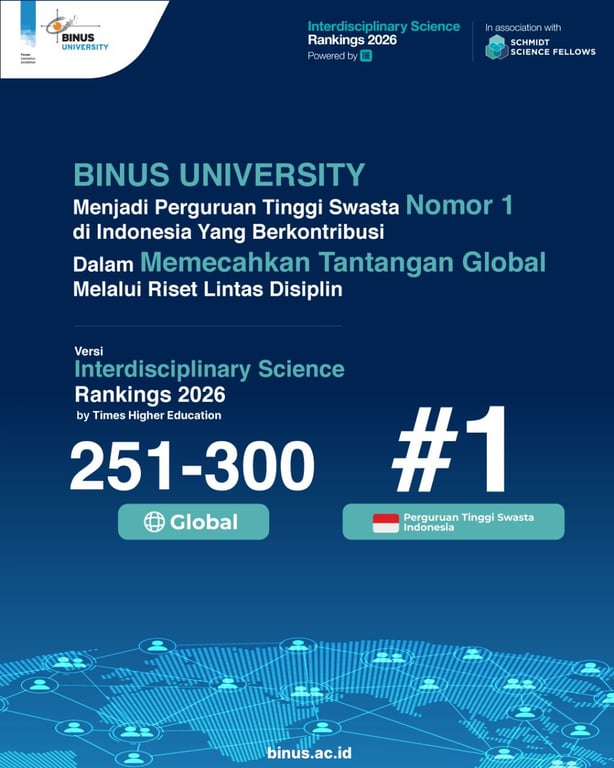 BINUS UNIVERSITY Jadi Perguruan Tinggi Swasta Nomor 1 di Indonesia Yang Berkontribusi Dalam Riset Lintas Disiplin Versi THE Interdisciplinary Science Rankings 2026