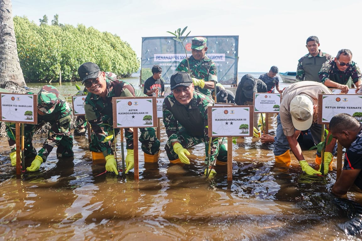Jakarta: Komando Gabungan Wilayah Pertahanan (Kogabwilhan) III menggelar kegiatan penanaman 1.000 pohon mangrove di Pantai Gambesi, Kelurahan Gambesi, Kecamatan Ternate Selatan, Kota Ternate, Provinsi Maluku Utara.