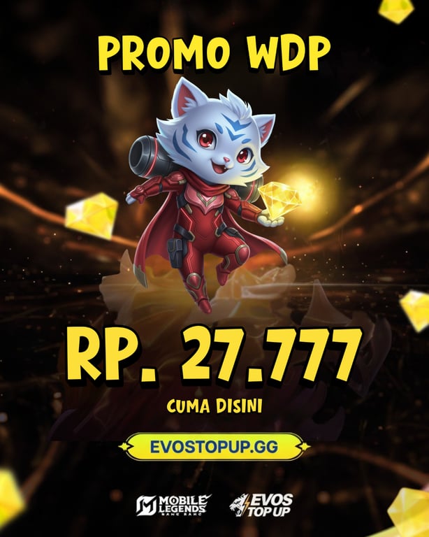 1️⃣ Buka situs resmi EVOS Top Up 2️⃣ Pilih game Mobile Legends: Bang Bang 3️⃣ Pilih produk Weekly Diamond Pass (WDP) 4️⃣ Bayar hanya Rp27.777 5️⃣ Diamond langsung dikirim ke akun kamu 💎