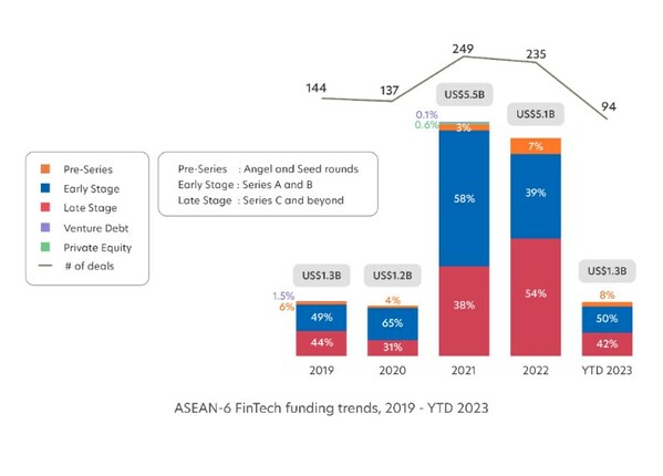 This year, Singapore and other ASEAN FinTech firms continue to face the same funding winter seen globally. FinTech investments in the six biggest ASEAN economies[1] came to US$1.3 billion in the first nine months of this year (9M23), a sharp decrease of around 70 per cent compared with the same period in 2022.