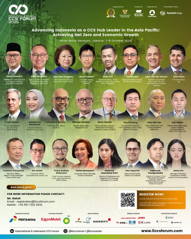Supported by Indonesia CCS Center (ICCSC) , the forum aims to position Indonesia as a regional hub for CCS initiatives, bridging public-private collaboration, advancing regulatory frameworks, and showcasing investment opportunities in decarbonization technologies.