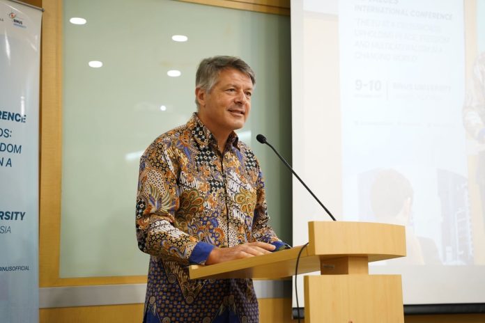 “Kolaborasi akademik seperti EU Values International Conference sangat penting untuk membangun pemahaman bersama mengenai demokrasi, perdamaian, dan multilateralisme. BINUS University menunjukkan peran strategisnya sebagai mitra Uni Eropa dalam menjembatani dialog keilmuan antara Eropa dan kawasan Global South,” ujar H.E. Denis Chaibi.