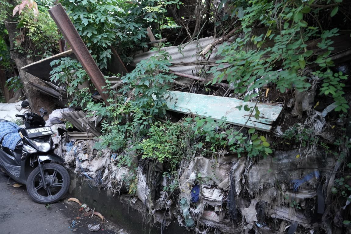 Tumpukan sampah dan potongan pohon di beberapa titik juga menambah potensi bahaya, termasuk risiko kebakaran serta gangguan stabilitas tanah penahan jalur.
