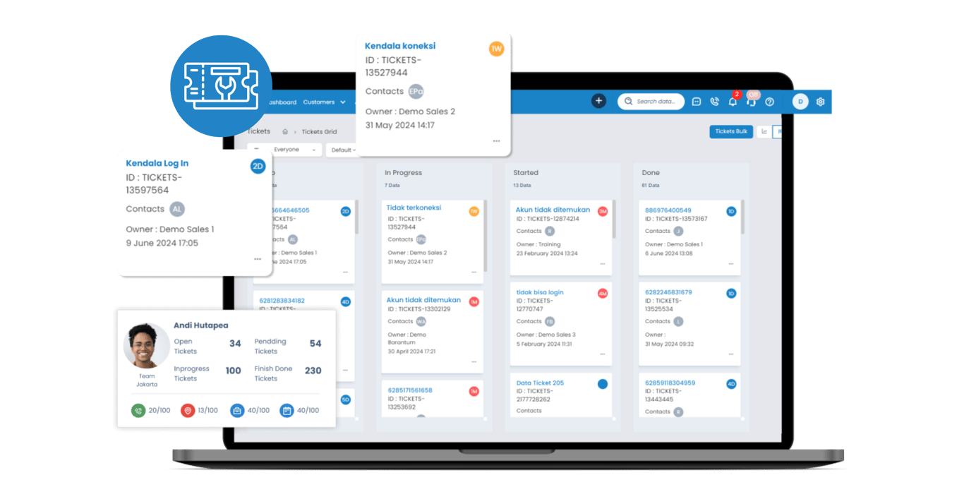 Menggabungkan pipeline penjualan dan ticketing dalam satu sistem membuat tim Anda dapat bekerja lebih cepat, efisien, dan terkoordinasi.