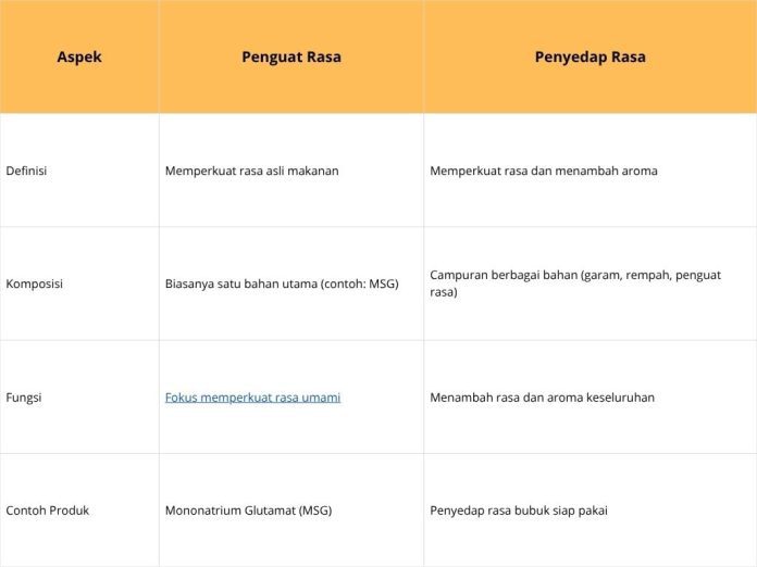 Perbedaan Utama Penguat Rasa dan Penyedap Rasa