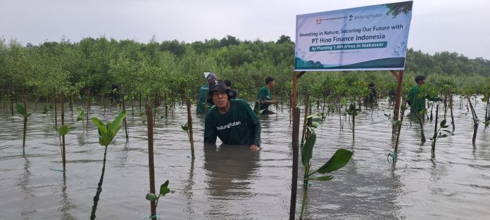 Makassar, 5 Juli 2025 – Setelah sukses menanam 2.511 mangrove di Pesisir Wonorejo, Surabaya, PT Hino Finance Indonesia berkolaborasi dengan LindungiHutan kembali menyelenggarakan kampanye penanaman pohon bertajuk “Investing in Nature, Securing Our Future” di pesisir Untia, Kecamatan Biringkanaya, Kota Makassar. Kegiatan ini berhasil menanam sebanyak 1.400 batang pohon mangrove jenis Rhizophora, yang mampu menyerap emisi karbon sebesar 93 kg CO₂ ekuivalen.
