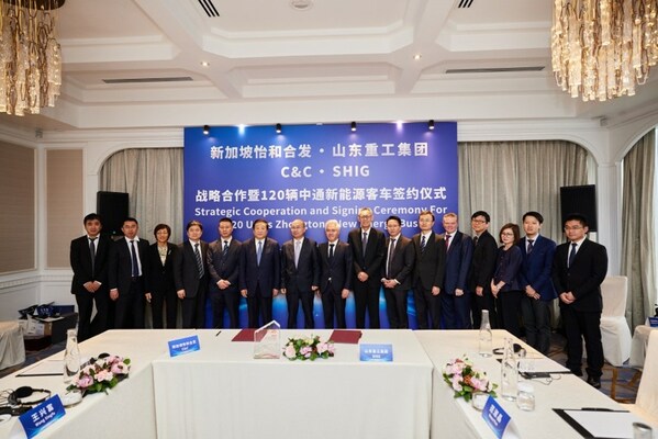 JINAN, China, Jan. 31, 2024 /PRNewswire/ — In a significant ceremony held in Singapore on January 25, Shandong Heavy Industry Group and Singapore’s Jardine Cycle & Carriage Direct Motor Interests (DMI) formally inked a deal for 120 Zhongtong Bus new energy buses. Zhongtong Bus new energy buses is one of the core enterprises of Shandong Heavy Industry Group. The event, attended by notable leaders and guests, underscored a shared commitment to advancing new energy transportation. Distinguished attendees included Mr. Zong Changqing, Minister Counselor of the Chinese Embassy in Singapore, Mr. Wilfrid Foo (Fu Si Ren), Managing Director of Jardine Cycle & Carriage Direct Motor Interests (DMI), Mr. Cheah Kim Teck (Xie Jinde), Director of Business Development for Jardine Cycle & Carriage Direct Motor Interests (DMI), and Mr. Tan Xuguang, Chairman of Shandong Heavy Industry Group, SINOTRUK Group, and WEICHAI Group.
