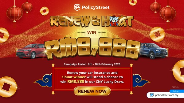 KUALA LUMPUR, Malaysia, Feb. 9, 2026 /PRNewswire/ — As Malaysians saddle up to return to their hometowns for festive reunions, PolicyStreet is encouraging drivers to stay a step ahead when it comes to protection by renewing their car insurance on time, or even early, with the launch of its Renew & Huat RM8,888 Lucky Draw.