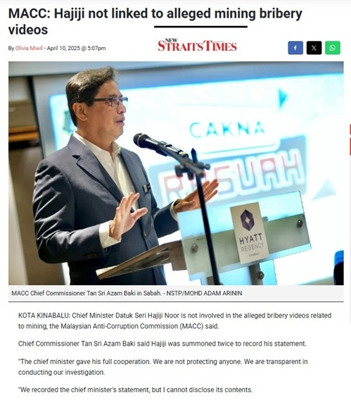 But the truth is, the Malaysian Anti-Corruption Commission (MACC) has not swept anything under the rug. Hajiji was interviewed twice. Multiple witnesses were called.
