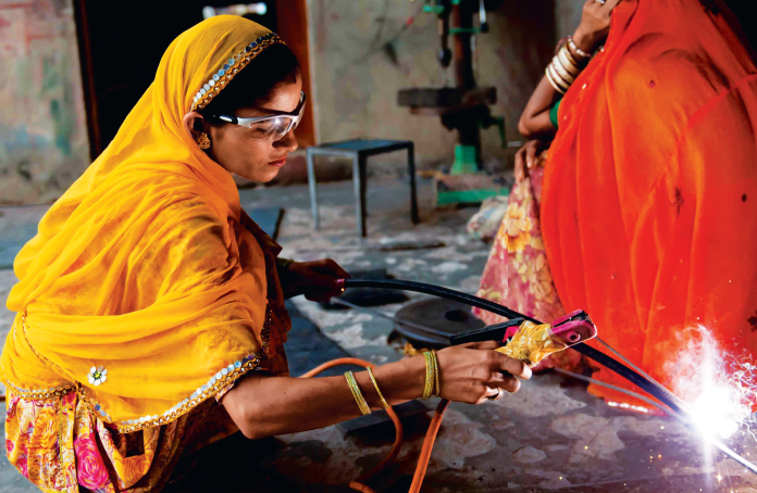 Barefoot College now operates a peer-to-peer learning model cemented in practical knowledge to train people to achieve a professional aptitude in programmes such as Solar energy, Water hygiene, Education, Health Care, Crafts, People’s Action, and Communication. Over three million men and women have been trained and many have then gone on to teach at Barefoot College as teachers, doctors, midwives, dentists, health workers, solar engineers, solar cooker engineers, water drillers and engineers, hand pump mechanics, architects, artisans, designers, masons, communicators, water chemists, phone operators, blacksmiths, wasteland developers, carpenters, computer instructors, accountants and recycling professionals.