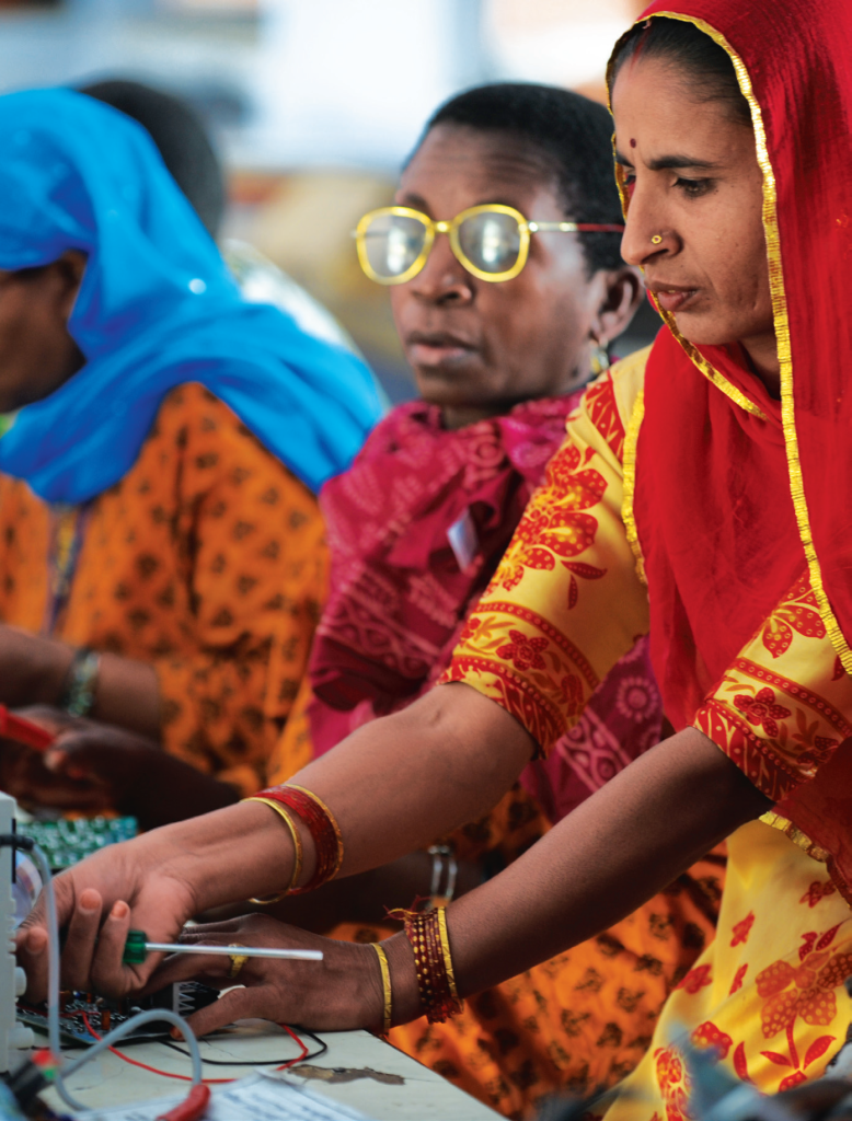 Mothers and grandmothers from villages worldwide have been successfully trained in the fabrication, installation and maintenance of solar lighting systems after undergoing only six months of hands-on instruction without written materials, delivered by their peers. Roy believes that women are easier to train than men because men expect too much too soon and simply want to obtain a certificate and get a job in urban areas, whereas if middle-aged mothers and grandmothers go through the programme, there is less chance of them leaving their rural homes and more likelihood they will contribute financially to their families and their communities.