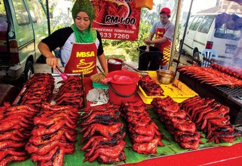 Vendors sell almost everything in Ramadan bazaars, such as clothes, accessories and toys, but the food stalls – like the one here offering barbecued chicken – probably see the most patronage as visitors buy meals on their way home after work.