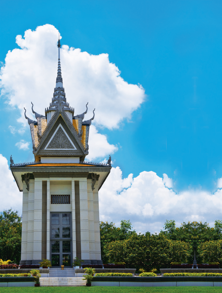 They refer to the number of sites in Cambodia where large numbers of people were murdered and buried by the Khmer Rouge regime. The memorial park at Choeung Ek is where the mass graves of many thousands of victims are located, most of them executed after they had been transported from the S-21 Prison in Phnom Penh. Walking on these grounds is very thought-provoking and a commemorative stupa filled with skulls of the victims leaves the visitor speechless and emotionally reflective.