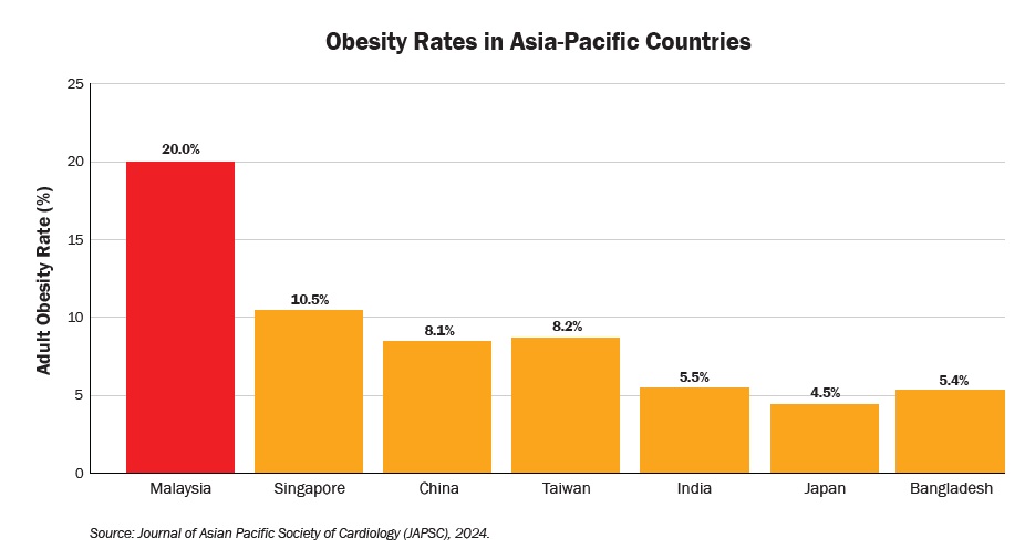 Show it as an example of a ‘modern pandemic’, with Malaysia having the highest obesity rate in the region]