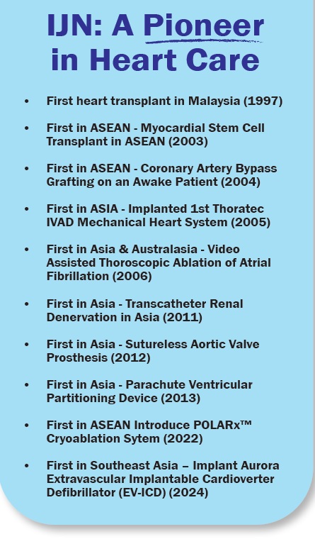 Prof. Dato’ Sri Dr. Ezani’s wish and vision for IJN to become a beacon of hope and positive impact is simple, yet so vital. It is that single-minded focus that will take IJN into the next phase in its mission of becoming the global cardiovascular and thoracic care centre it is always meant to be.