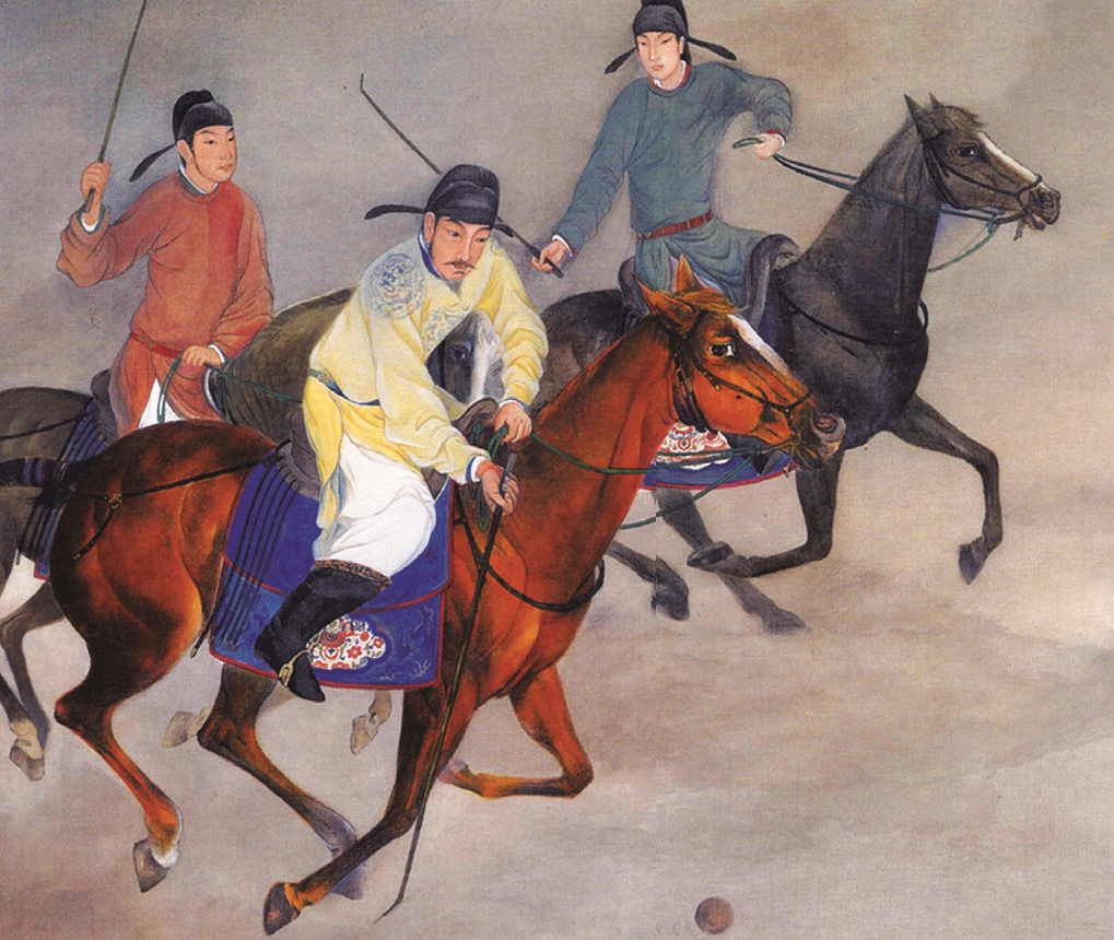 During the Tang Dynasty, playing polo from horseback was a common leisure sport for both male and female aristocrats.