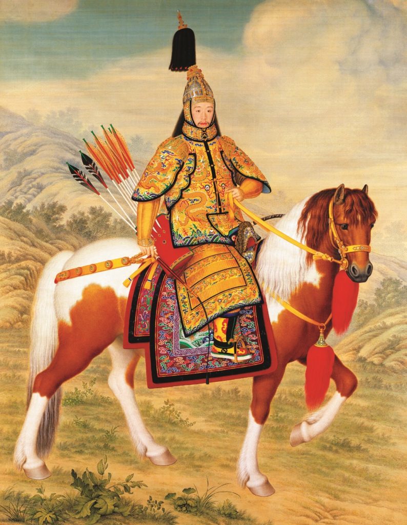 The Qianlong Emperor Hongli of the Qing Dynasty is in ceremonial armour on his horse, also in livery, in this painting by Italian artist Jesuit Castiglione. The Emperor’s early reigning years saw the country move into an era of prosperity.