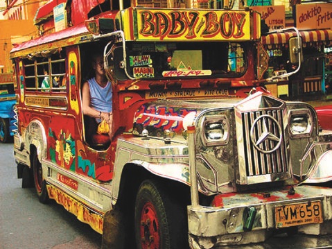 The transportation of choice in Manila – and in cities across the country – is the distinctive, brightly painted jeepney, which makes travel more affordable.