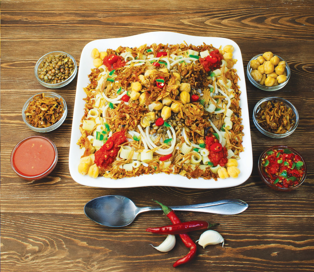 A foreign-influenced hybrid dish residing in the collective hearts and minds of Egyptians is koshary. Believed to have originated from the Indian khichri (a rice and lentils dish) introduced into Egypt by British colonials in the late 1800s, koshary quickly gained popularity with the masses because it filled stomachs without emptying pockets. And somewhere along the line, Italian macaroni and Middle Eastern spices got fused in to turn it into something uniquely Egyptian.