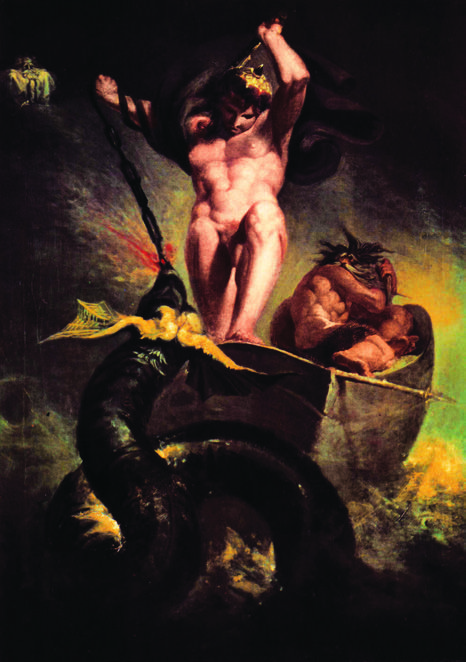 In Thor’s youth, on a fishing trip with a giant called Hyamir, he encountered Jörmungandr, who advised Thor to stop rowing when they had reached his regular fishing spot. Thor ignored the advice, and rowing his boat to the edge of the world, dropped his line; whereupon he encountered the mighty sea-snake who took his bait. A furious battle of strength ensued but just as Thor raised his hammer to finish off the beast, Hyamir cut the line, enraging Thor and sending the serpent to the depths where it avoids the Norse God – but not forever. It is said that Thor is destined to exact revenge on the Midgard Serpent on Ragnarok the end of the world, when earth and the underworld is destroyed, the oceans leave their beds, the heavens are torn apart and creation and time itself is shattered, causing a great battle between the Gods and evil and providing Thor a chance to crush the skull of his old foe once and for all…