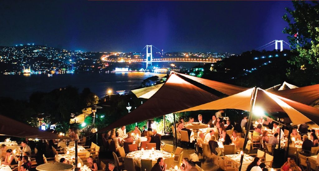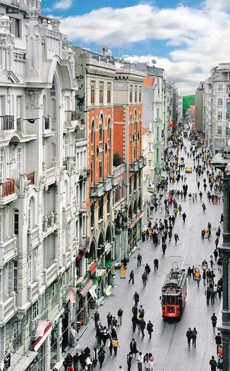 The elegant Istiklal Avenue in the heart of Beyoglu – located on the European side of Turkey – is lined with boutiques, music stores, bookstores, art galleries, cinemas, theatres, libraries, cafés, pubs, night clubs with live music, chocolateries and restaurants – an ideal quarter in which to sit and sip Turkish coffee and close a business deal. The cosmopolitan avenue is surrounded by an array of historical and politically significant structures, such as the Tünel – the 2nd oldest subway in the world – and is visited by up to three million people on weekends.